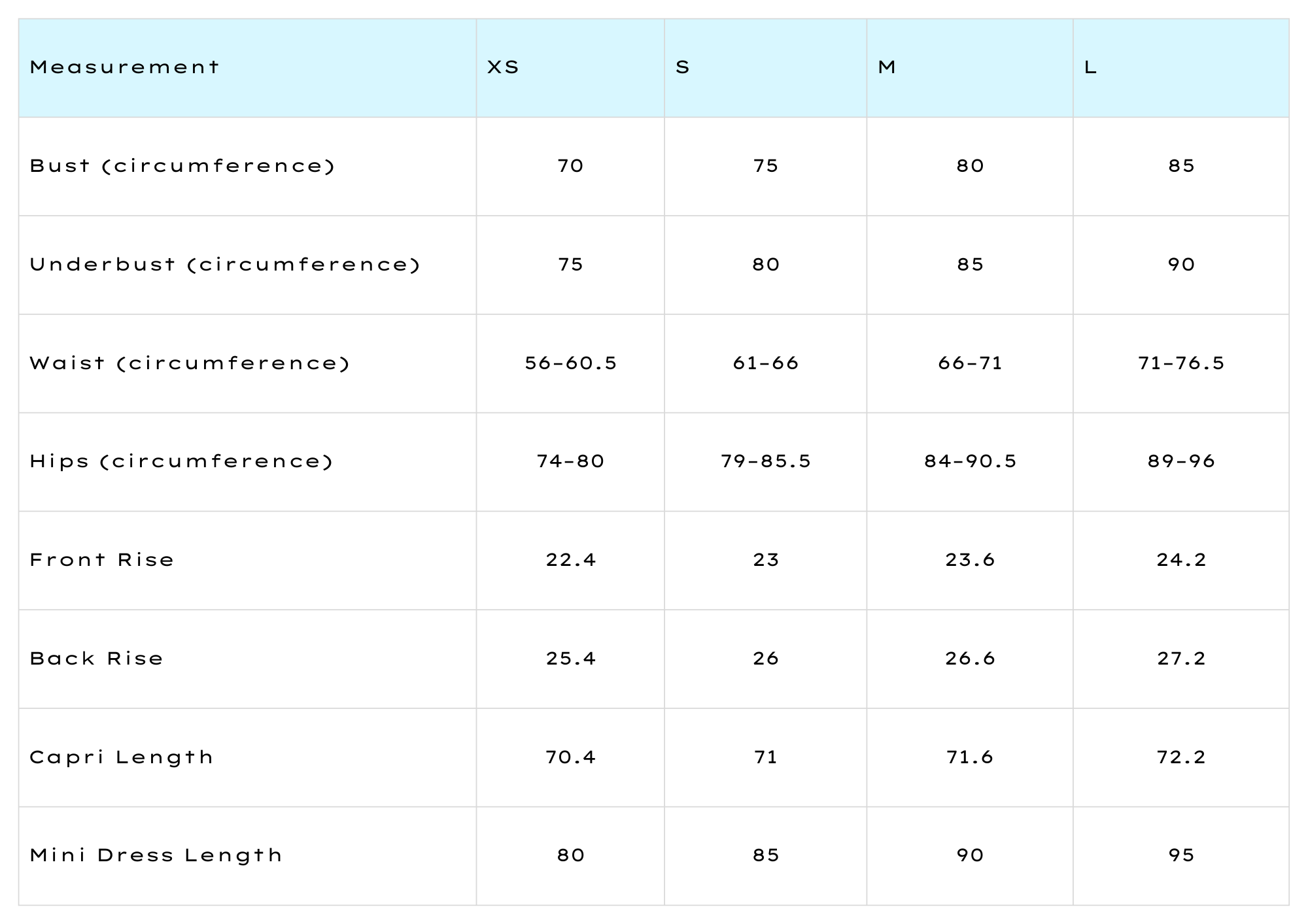 - Low Waist: Measure around your body a few centimetres below your belly button — this is where the Capri Pants naturally sit.