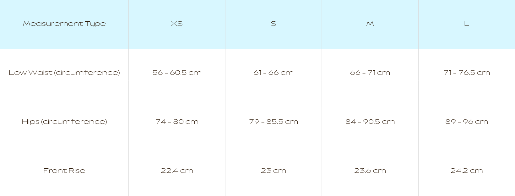 - Low Waist: Measure around your body a few centimetres below your belly button — this is where the Capri Pants naturally sit.